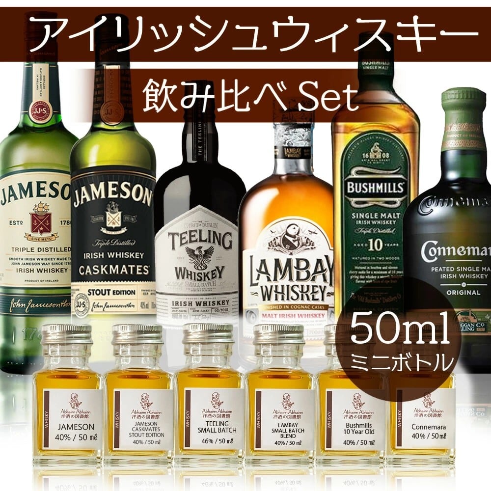 送料無料 アイリッシュウィスキーの逆襲飲み比べセット アイルランドの栄華と没落、そして復活 VS. スコッチウィスキー ジェムソン スタウトエディション ティーリング ランベイ ブッシュミルズ カネマラ 50ml × 6本 | Abhainn Abhainn 洋酒の図書館