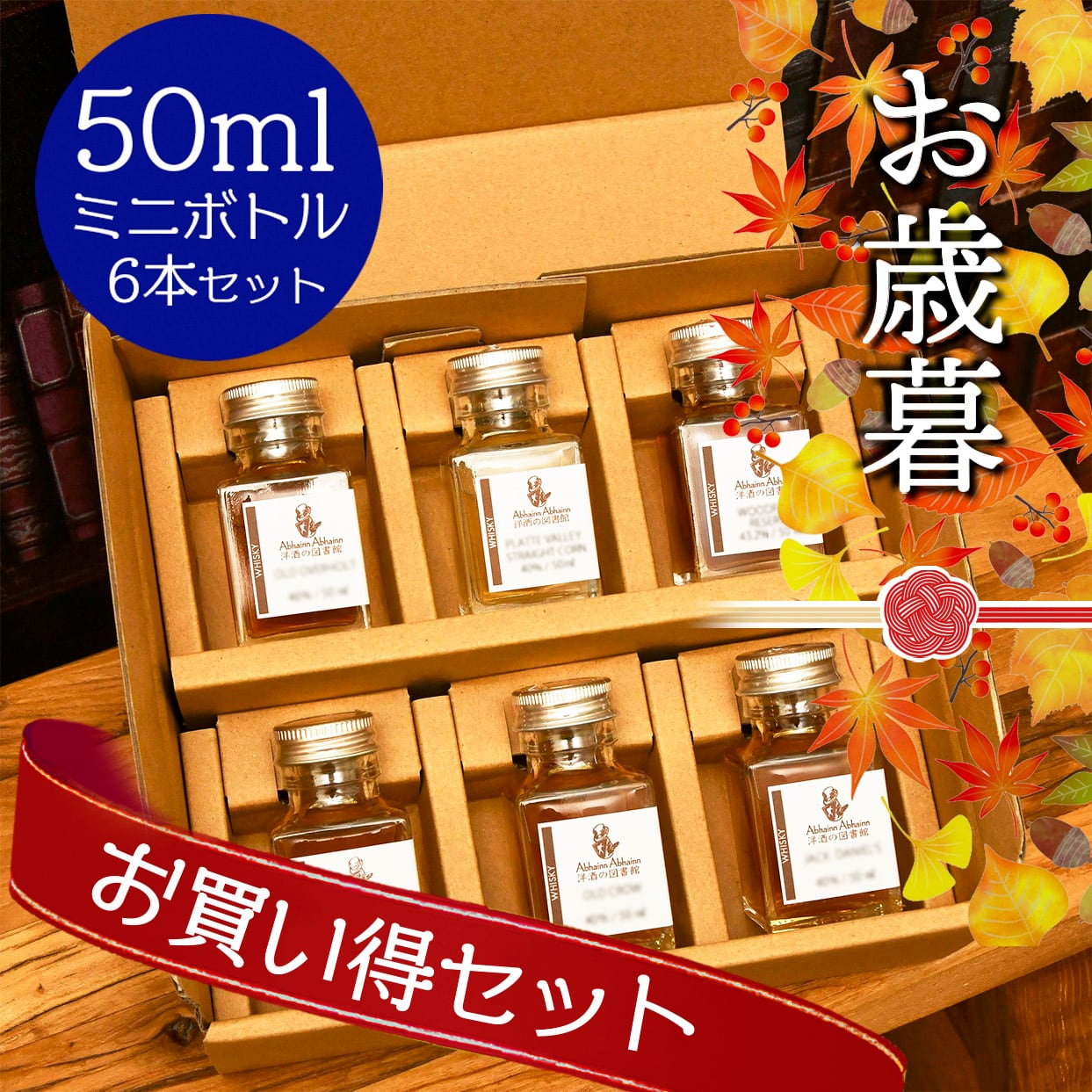 お歳暮の贈り物にぴったりな、お酒が好きな方への特別なプレゼントセットです。ウィスキーの魅力をたっぷり詰め込んだ、お買い得なセットです。ミニボトル6本セットで、50mlずつ楽しめる量り売りお手頃サイズ。ハイボール作りにも最適!ラッピングやメッセージカードもお付けできます。