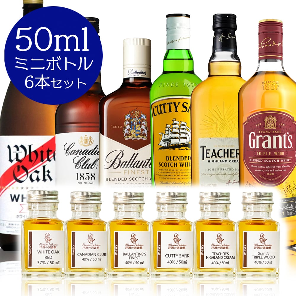 お歳暮 セット ギフト お買い得 ウィスキー お酒 呑み比べ 50ml × 6本 贈り物 お酒が好き ミニボトル 小瓶 小分け 量り売りお手頃 ハイボール ラッピング メッセージカード ホワイトオークレッド カナディアンクラブ バランタイン カティサークティーチャーズ グランツ | Abhainn Abhainn 洋酒の図書館